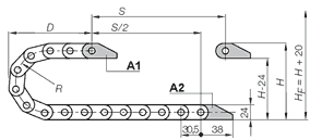 Here you can configure your e-chain system® individually. All entries and changes are taking over to the part list which is situated at the end of the page.
