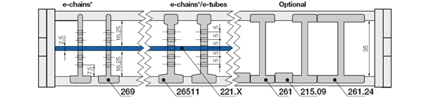 Please note: Before using this series on long travels, please consult igus®. We recommend an e-chain® that is openable in the outer radius for long travels. Example: Series 2700