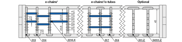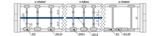 Please note: Before using this series on long travels, please consult igus®. We recommend an e-chain® that is openable in the outer radius for long travels. Example: Series 3500