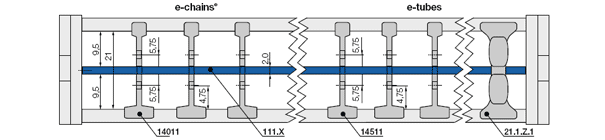 Here you can configure your e-chain system® individually. All entries and changes are taking over to the part list which is situated at the end of the page.