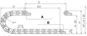Here you can configure your e-chain system® individually. All entries and changes are taking over to the part list which is situated at the end of the page.