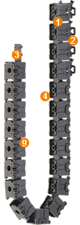 Here you can configure your e-chain system® individually. All entries and changes are taking over to the part list which is situated at the end of the page.