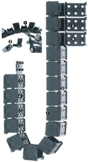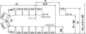 Here you can configure your e-chain system® individually. All entries and changes are taking over to the part list which is situated at the end of the page.