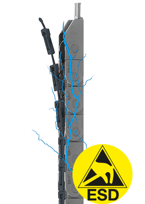 zipper ESD e-chains® deliver in terms of practicality and performance. The zipper function makes them a very useful product to reduce assembly time. The small pitch, the tough-elastic zipper-band, and the sturdy link work well in high acceleration applications. The zipper series is one of the most popular igus® e-chain® series for demanding industrial sectors.