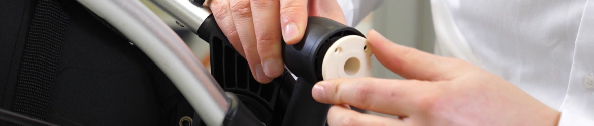 Anyone who has children knows the situation: for excursions and on holiday, the pram has to fit in the boot of the car. The best way to do this is with prams that can be dismantled into their individual parts in just a few steps. In individual cases, it turned out to be a very complicated task because of the lubricated machined ends on the wheels. Hands and clothes were full of grease and the wheels had to be packed again individually in plastic bags so that the grease would not still get on the interior of the car and dry out the machined ends.