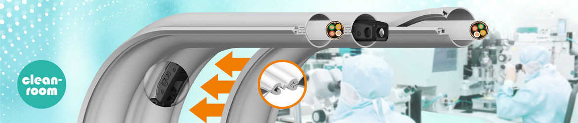 Great demands are placed on the cables used in the cleanroom. Moving components must be particularly abrasion-resistant because any contamination has a damaging effect on the product and the process. This costs money. For this, air currents within the room are defined that remove particles smaller than a hair. By using products with low abrasion, i.e. few particles, the cumbersome and expensive removal of particles is rendered unnecessary.