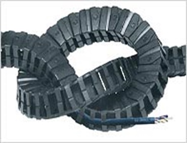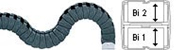 The triflex® series has been developed to safely guide cables during a 3D movement. In this case, the flexibility of a hose is combined with the stability of an e-chain® with a fixed, defined radius. With easy triflex® the installation of cables and tubes is child's play. The cables can be inserted in the e-chain® from top or bottom through the flexible tongues This unique modular design enables very complex movements. As example: Combination of chain links moving in single, double and triple axes in an e-chain®.