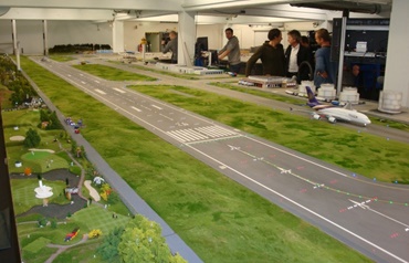An E2/000 e-chain® Series 255 is used here in the new model airport "Knuffingen Airport" - a replica of the Hamburg Fuhlsbüttel airport and a part of the adjacent Lufthansa hangar - at the Miniaturwunderland in Hamburg. On an area of 150 sq.m., 360 takeoffs and landings of almost 40 different aircrafts can be seen here daily. The aircraft lift provides the connection between the takeoff and landing strip level and the other floors below.
