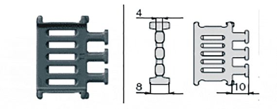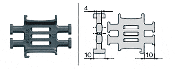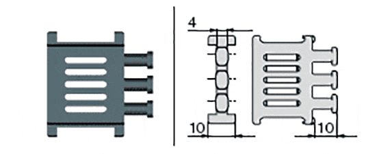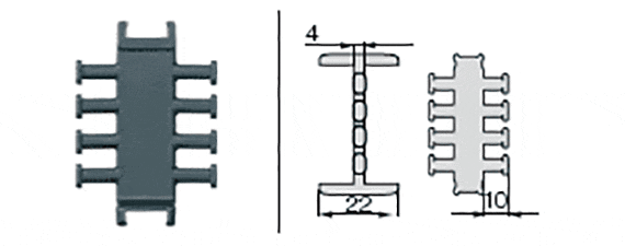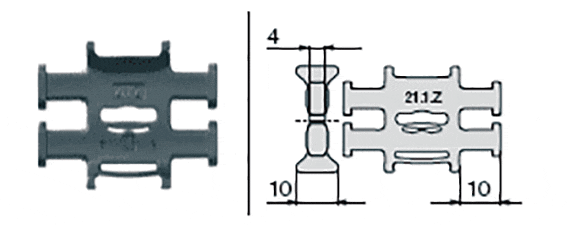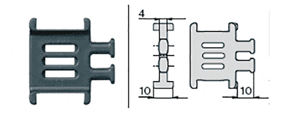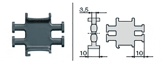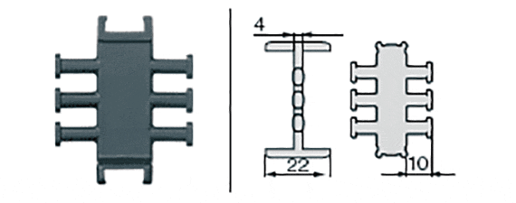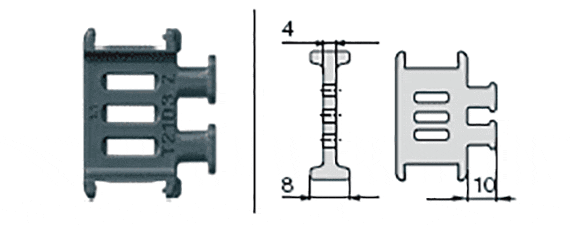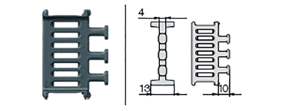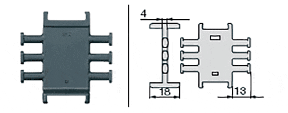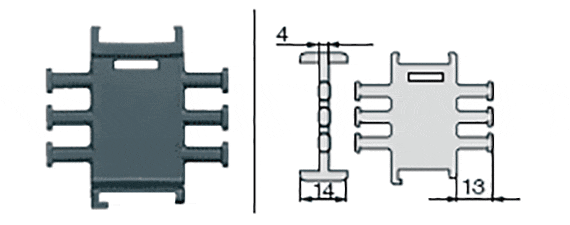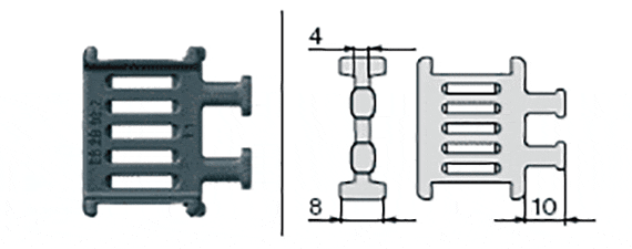 | Part No. strain relief separator | For series | Number of teeth | Width | Width of crossbar | Minimum distance | Max. cable diameter Ø | |