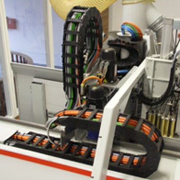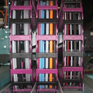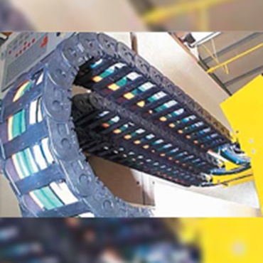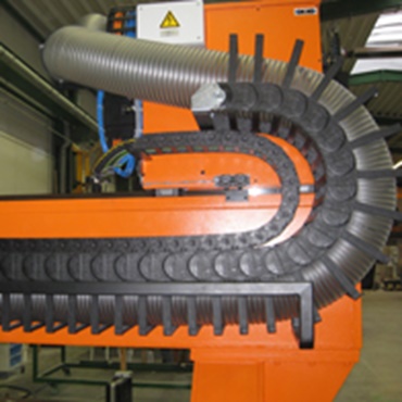 High-temperature e-tube inside the machine guides and protects the cables in the hot chips area.