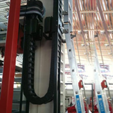 Strong air draughts and the fill weight in the hanging installation requires a stable and reliable structure of the energy chain.