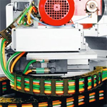 In this CNC multi-spindle lathe, every single working position must be securely supplied with media, energy and signals. High freedom of movement in all axes require a high durability and reliability of the cables.