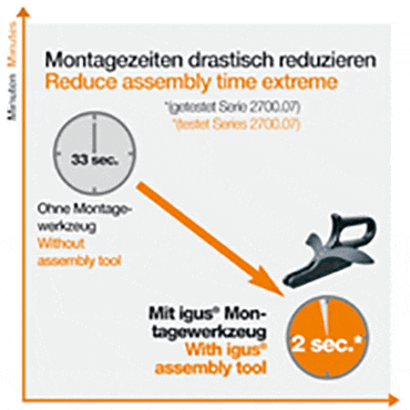 The assembly time was tested with and without tools in the assembly line at the igus® factory