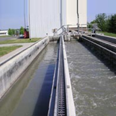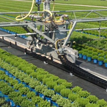 E2/000 roller e-chain® in a "guidelite" solid plastic guide trough in an irrigation system.