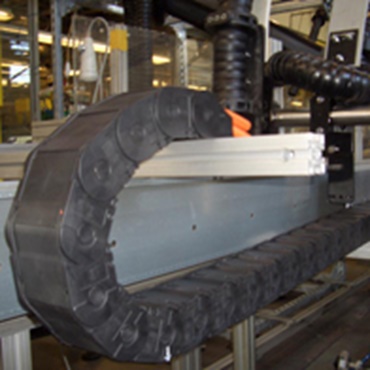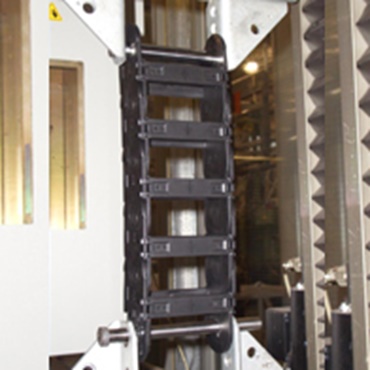 The E2/000 e-chain® provides the energy supply of the X and Y axis. Thanks to the snap-open and securely fitting crossbars, a subsequent filling and high speeds are easily possible.