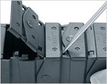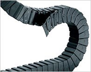 The triflex® series has been developed to safely guide cables during a 3D movement. In this case, the flexibility of a hose is combined with the stability of an e-chain® with a fixed, defined radius. This unique modular range enables very complex movements. As example: Combination of chain links moving in single, double and triple axes in an e-chain®.