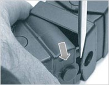 Opening in only Series 352/353 - Place screwdriver in the opening and lift lid
