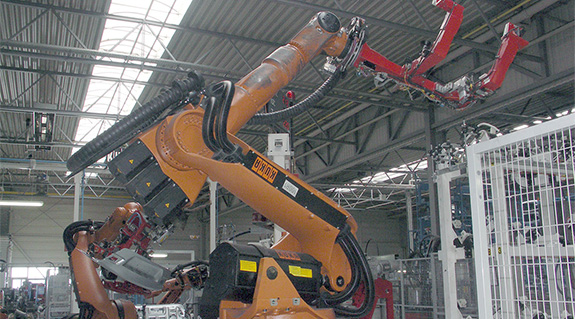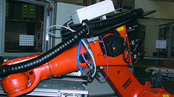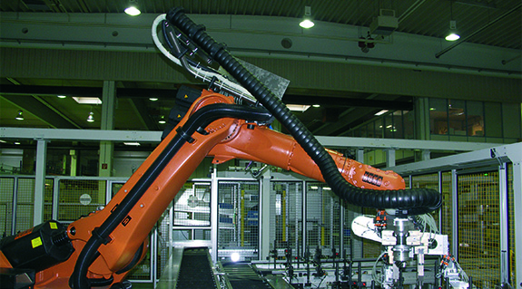 Safe, flexible cable guidance for KUKA articulated arm robots in aircraft construction