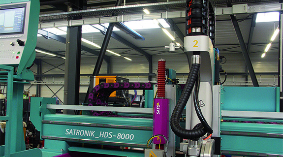 The energy chains and cables in this flame cutting machine encounter problems such as heat, flying sparks, and extreme amounts of dirt.