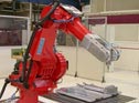 Two robots undertake the drilling and riveting of aircraft fuselages before the final assembly.