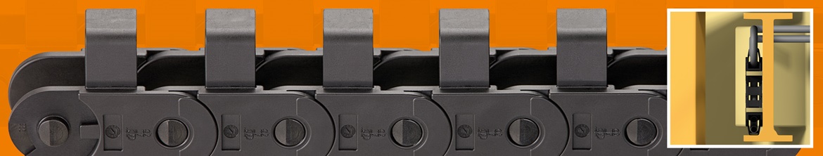 The safe guidance of hydraulic hoses in support legs of construction machinery, such as concrete pumps and mobile cranes, is of crucial importance here because these hoses need to provide the machines continuously and reliably, even under high mechanical stress and severe weather conditions. The E2 hydraulic chain can reliably guide cables and two hydraulic hoses. It not only protects the internal cables, but also uses a predefined minimum bend radius to prevent torsion to and kinking of the hoses.