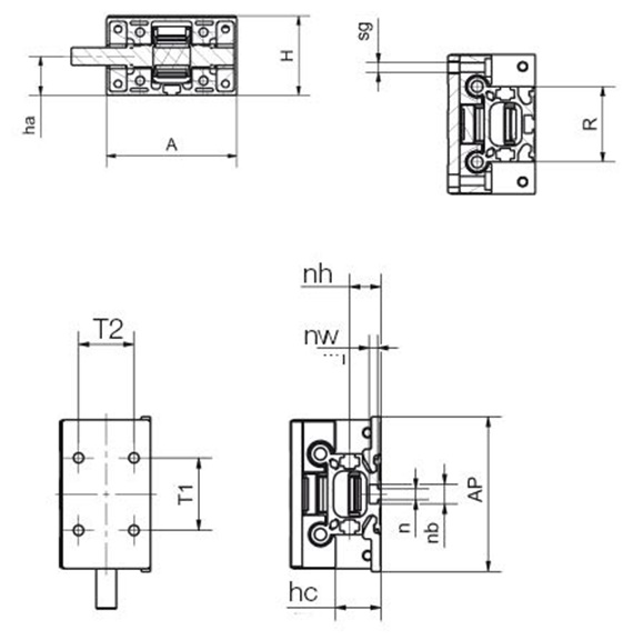| Part. No. | d2 | X | E | AP | LP | dp | n | np | nw | nh | T1 | T2 | d |