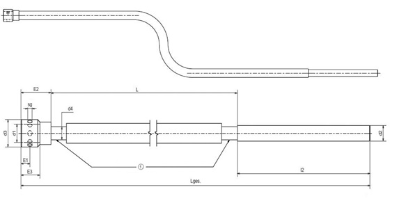| Ordering number | d1 | d2 | d3 | d4 | l2 | sg | E1 | E2 | E3 | L | Total length | n max |
