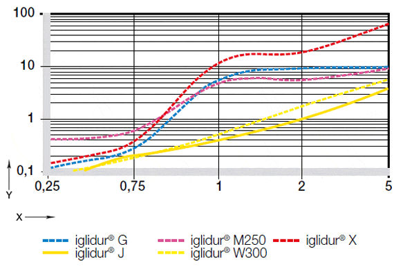 Varying loads naturally influence the bearing wear very strongly. There are specialists among the iglidur® bearings for low, high or extreme loads. With hardened, smoothed shafts, iglidur® J can be designated as the most wear-resistant bearing material for low loads. iglidur® Q is on the other hand the specialist for extreme loads.