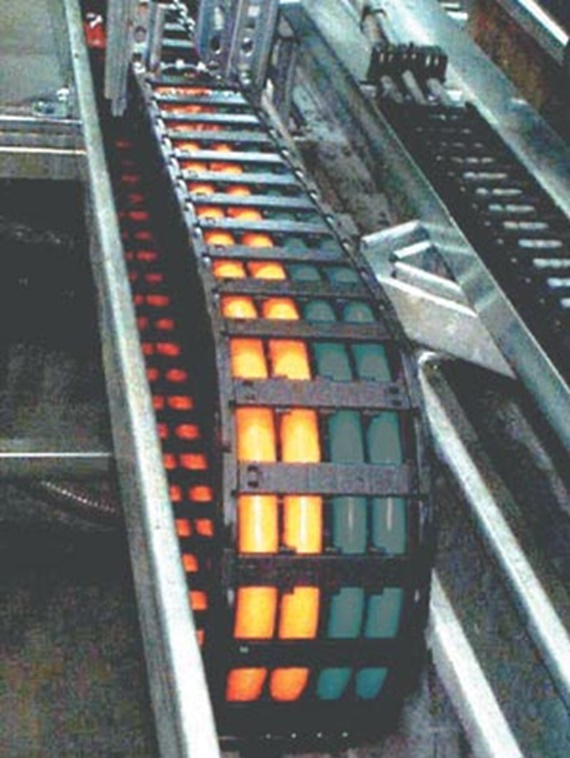Here, the servo cables are highly flexible motor connection cables with a complete copper shield and an integrated, shielded pair of control cores. This cable type was selected due to the fact that here the problematic case of an outof- round braid form due to the different core cross sections is a significant factor and that the various bending behaviors of the production methods are therefore emphasized.