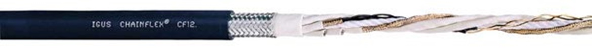 An asynchronous motor, for example, was therefore connected via an unshielded heavy-current cable (chainflex® CF30) to a frequency converter. This frequency converter with pulse width modulation becomes the generator of new spectral shares never existing previously in the primary or secondary networks. On a parallel basis with this heavy-current, chainflex® cables were also kept available for digital signal transmission in energy chains. Especially good results can be achieved here by the chainflex® CF12 cable which was specifically designed according to the EMC aspect. This cable possesses twisted-pair cores, the pairs of which are provided with a copper shield, as well as a total shield made of a steel braid in addition. Interference over a broad frequency range can therefore be effectively prevented as a result.