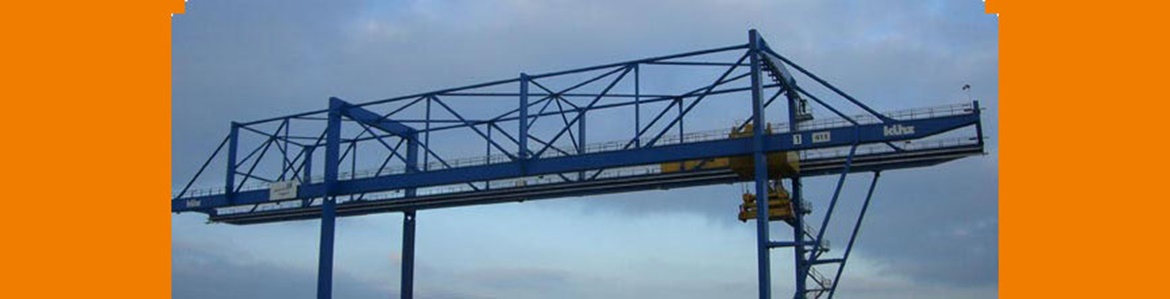 This application is a large loading crane at a port in Austria for loading containers for ship, rail and lorry.