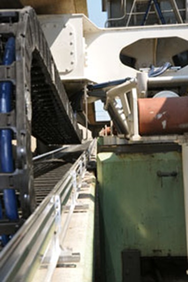 With these lock gates, the energy supply had to be replaced quickly, so pre-assembled readychains® from igus® were used, with appropriate connectors were already fitted. The e-chains® are routed in aluminium channels and connect the gates with the supply building. Travel is about 40 metres for each lock gate. The e-chains® must be seawater-resistant and be able to compensate sideways movement.